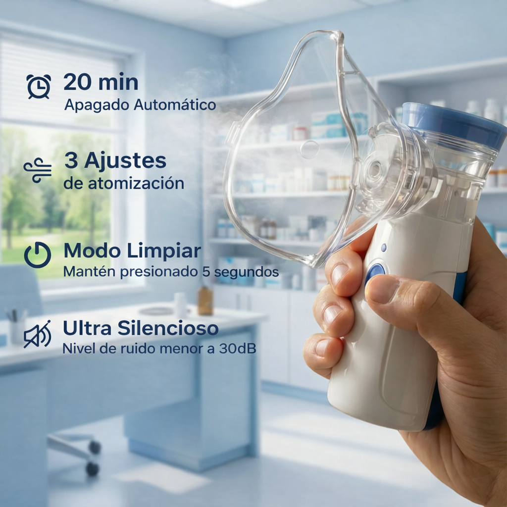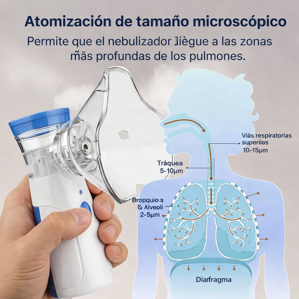 Con una tasa de atomización de ≥ 0,3 ml/min, el dispositivo administra el medicamento eficientemente. Esto significa un alivio más rápido de los síntomas, ya que la fina niebla producida ayuda a asegurar una mejor absorción del medicamento en el sistema respiratorio.